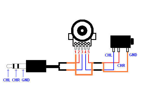 Ahora la soldadura desde el lado de salida del potenciómetro de Control de volumen para el jack hembra de 3,5 mm.