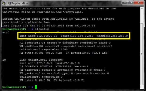 inet addr - dirección IP - por ejemplo 192.168.1.15
