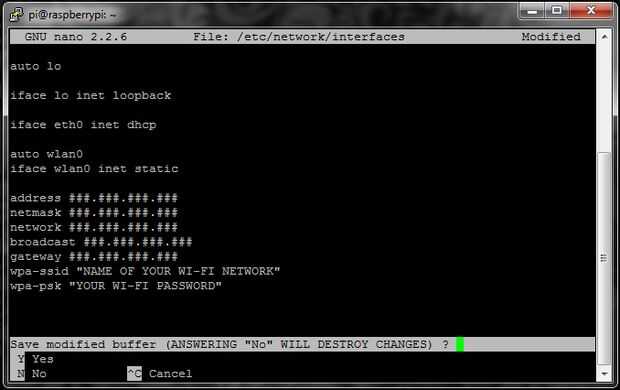 Después de que usted haya terminado, presione Ctrl + X para salir del archivo. Se le pedirá si desea guardar los cambios. Tipo "Y" para sí y luego presione Entrar. Usted debe ser devuelto a la línea de comandos.