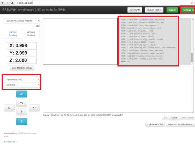 También es una buena idea para comprobar la configuración GRBL antes de intentar cualquier movimientos. Para ello sólo presione el botón de configuración ($$) en la esquina superior derecha de la pantalla. Si usted ha estado usando su máquina CNC antes de intentar esta configuración ya debe ser los correcta y este paso es completamente innecesario.