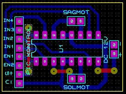 Hice un PCB para mis motores de dc con L293D. Tienes que conectar el L293D como esta: