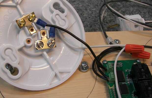 Uno conecta cable negro de la N.O. (normalmente abierto) tornillo terminal conexión de relé 1 a este enchufe de lámpara (tornillo de latón en la base) mientras que la otra toma de la lámpara se conecta de manera similar a la conexión de N.A. para el relé 2.
