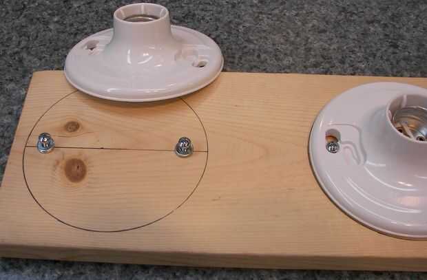 Se colocan los zócalos de lámpara y las ubicaciones de los tornillos marcan con un lápiz. Los tornillos y dos arandelas se agregan y parcialmente atornilladas en su lugar. Los zócalos de lámpara montan libremente como un "dry fit" para ver que encajan en su lugar muy bien.