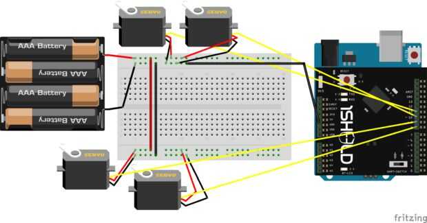 Conecte todos los terminales de tierra (cables marrón) de los servos con la tierra