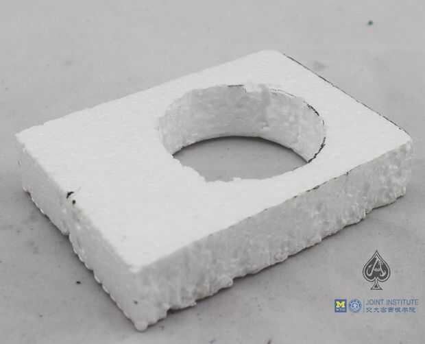 1. corte un 100 * 30 * 120 m m bloque de espuma y corte un diámetro del agujero del bloque.