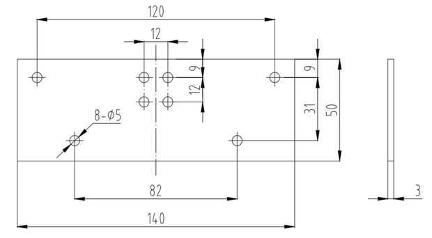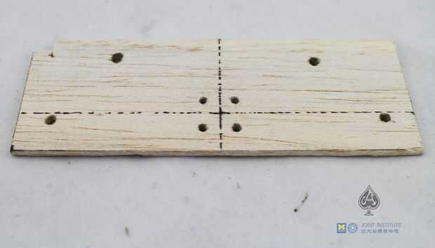 1. corte un 140 * 50 * 3 m m placa desde el panel de madera de balsa. Ocho perforaciones.