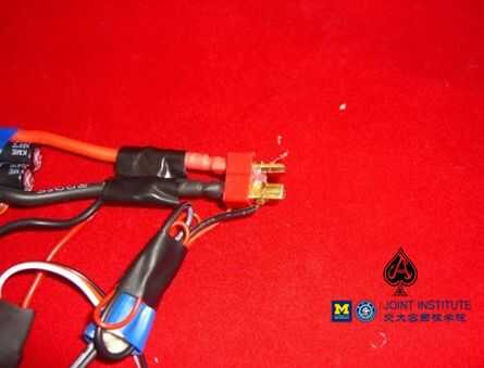 2. Corte el enchufe en forma de T y tira la tapa aislante en la parte superior de dos cables de otro ESC para la longitud de 10 mm.