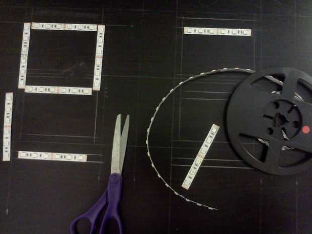 Cortar las tiras de LED en segmentos largos de 6-LED.  Los segmentos temporalmente a la mesa con cinta adhesiva.