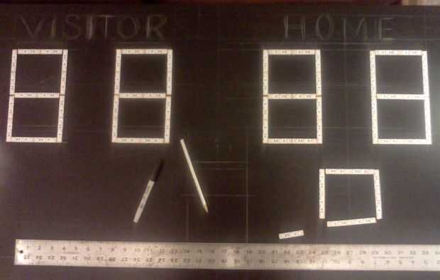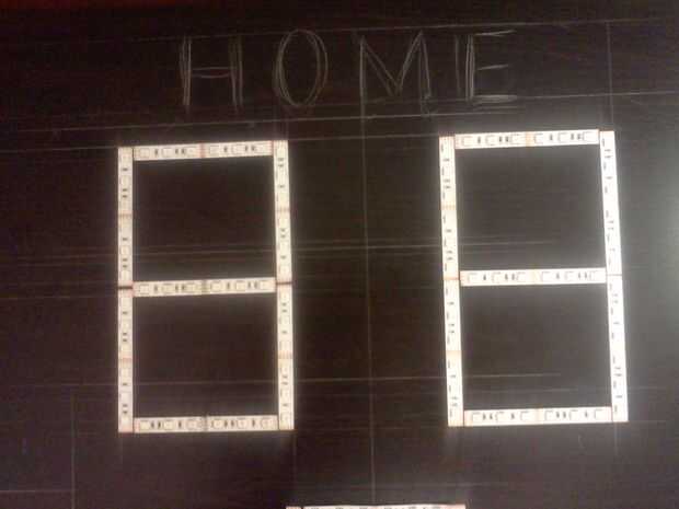 Donde los 7 segmentos, circuito y demás voluntad ir sobre la tapa de tabla de diseño.  Ver dibujo de detalles de diseño.