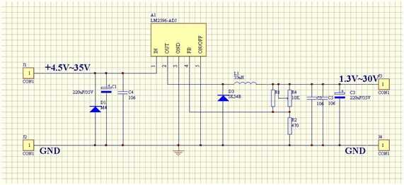 Hemos usado un regulador de voltaje de LM2596S con el esquema arriba.