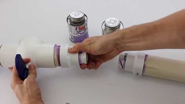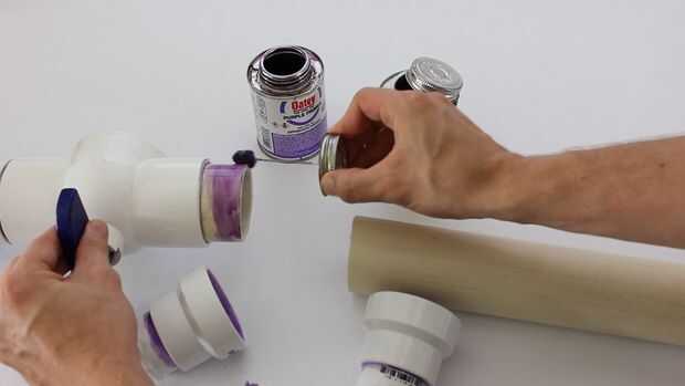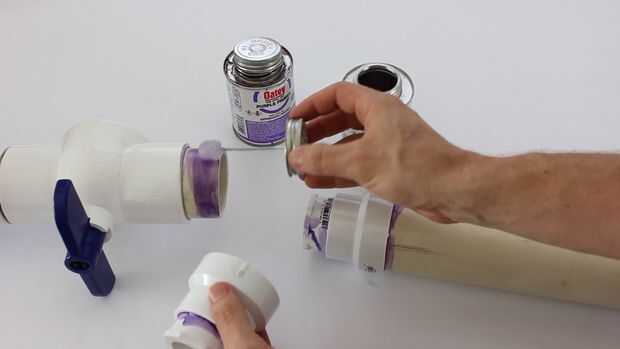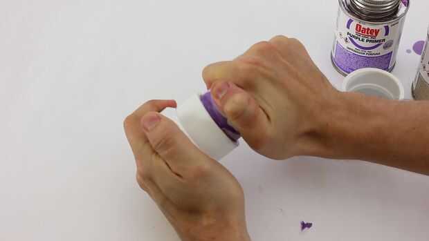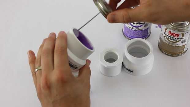 Para los accesorios de conexión, utilice el mismo procedimiento que usaste antes de conectar las piezas de PVC. Primero aplique una capa de imprimación de PVC a la conexión. Luego aplique el cemento de PVC. Siga las instrucciones específicas de la botella.