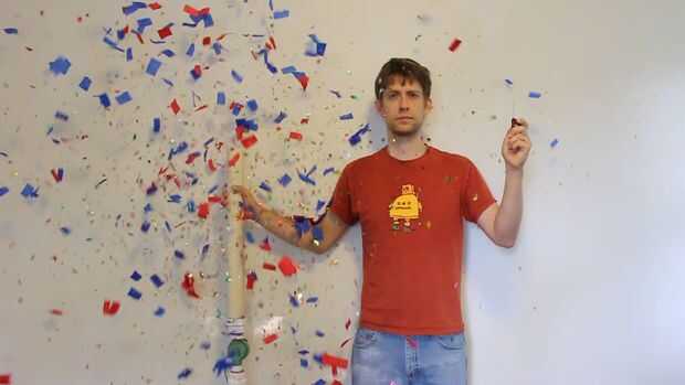 Por último, coloque el cañón donde quieras disparar. NO NO ES DE PUNTO A NADIE. Solo tire el control remoto y presione el botón. El cañón debe disparar una gran explosión de confeti todo. YAY!!!