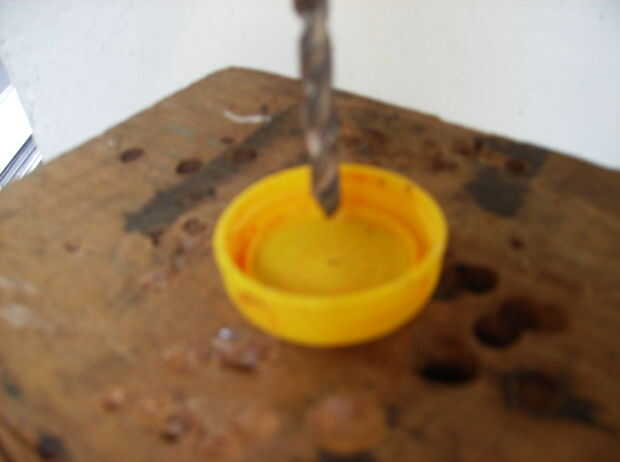 Quite la tapa de la botella y taladre o corte un pequeño agujero en él.