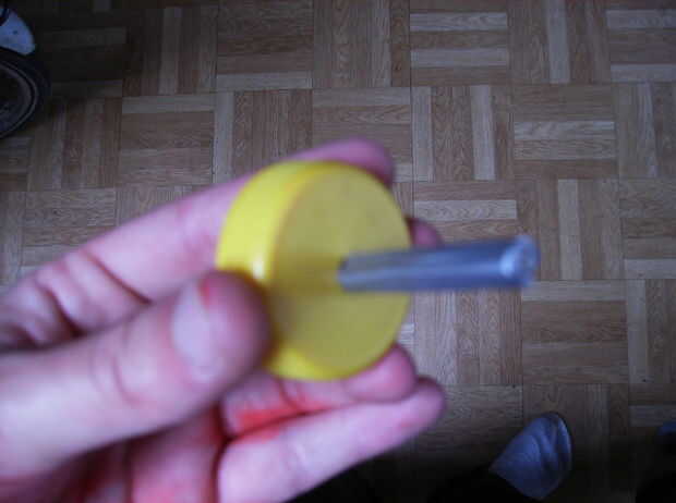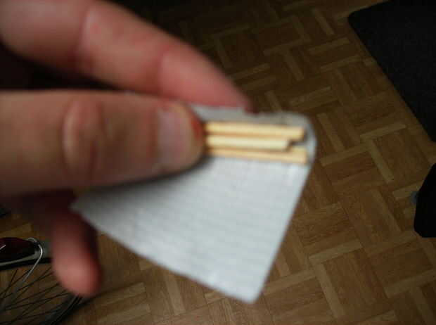 Sacar de sus partidos. Compruebe cuántas necesita llenar el agujero perforado en la tapa. Usted probablemente necesitará 5 o 6 Si ha perforado un orificio de 0,5 cm de ancho.