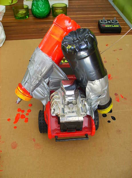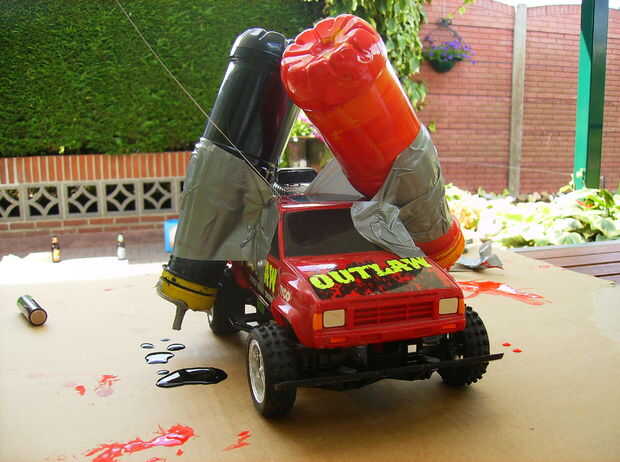 Que puede conectar las botellas para el coche utilizando ducktape. Sólo la cinta alrededor de la botella y cinta adhesiva en el coche.