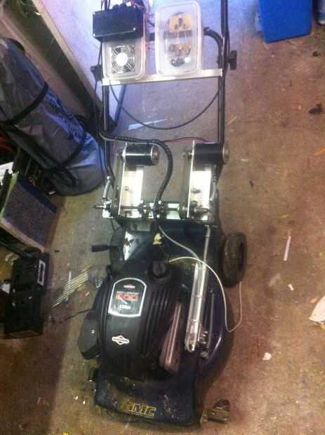 Este cortacésped tiene adelante - reversos comandos de derecha - izquierdos -, control de ajuste y regulador de altura de corte. Todo esto de mi heli de Hobbyking RC.