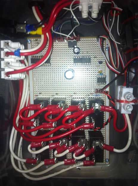 Las salidas PIC son conectadas a MC34152P doble 2. Básicamente sólo reaccionan a un cambio en su clavija de entrada (0V o 5V) y conducirá su pin de salida alta o baja (0V o 12V) por consiguiente con una corriente máxima de 1Amp, que es grande para relés como el PIC no puede manejar ese tipo de carga en sus pernos. Estos IC está diseñados para conducir los MOSFETS pero funciona muy bien con relés.
