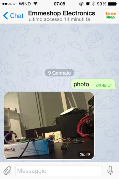 Ahora si usted envía un mensaje de texto con "foto", frambuesa responder con una foto
