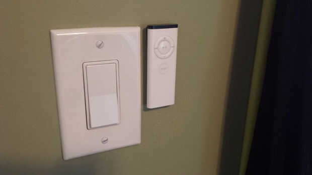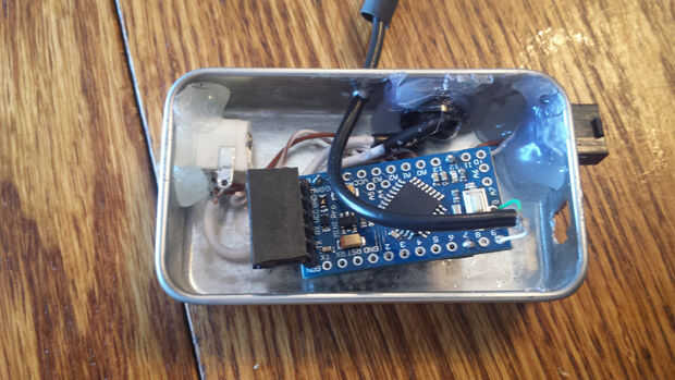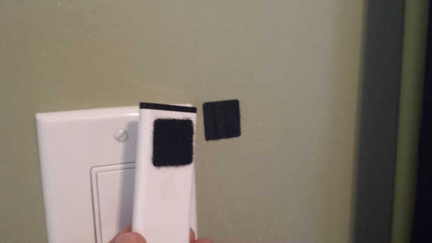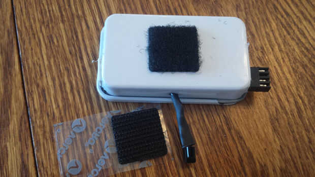 Pongo un parche de Velcro en la parte posterior de la lata y el parche correspondiente en la cabecera. La idea era hacer una instalación semipermanente que se quedaría en su lugar, pero se podía quitar en caso de que necesitaba para cambiar la programación.