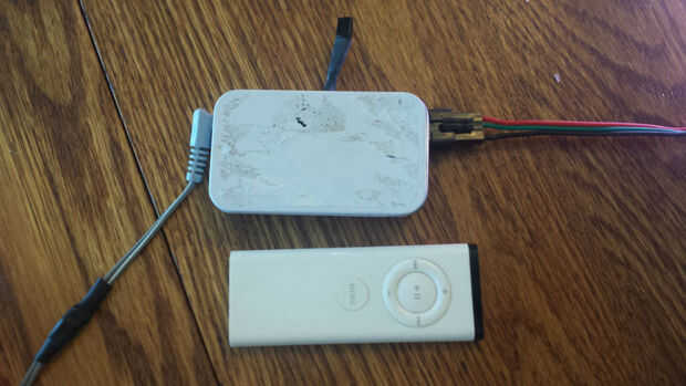 Terminé tomando el receptor IR fuera de la caja y tropezar hacia fuera la parte superior con un largo, fino alambre. Así, me podría montar la caja en un lugar oculto, pero echar el IR receptor "vistazo" a fin de captar la señal de control remoto más confiablemente.