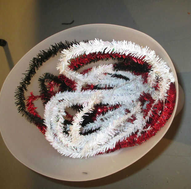 Lo tackiest... ocupa una planta de flor de Pascua que "ganó" en la fiesta fiesta Yankee Swap en diciembre. Todavía tengo la planta, tiene gran hacer, pero relevó del cubo horrible estaba sentado en. Era tan feo, que no quería fotografiarla como es. Yo le salvó la vista-se quema. En su lugar, os muestro la jaula plástica brillante que era el cadalso para los 12 pies de guirnalda pegajoso que se muestra en el cubo de basura. Incluso tuvo un cierre de Santa "oro".