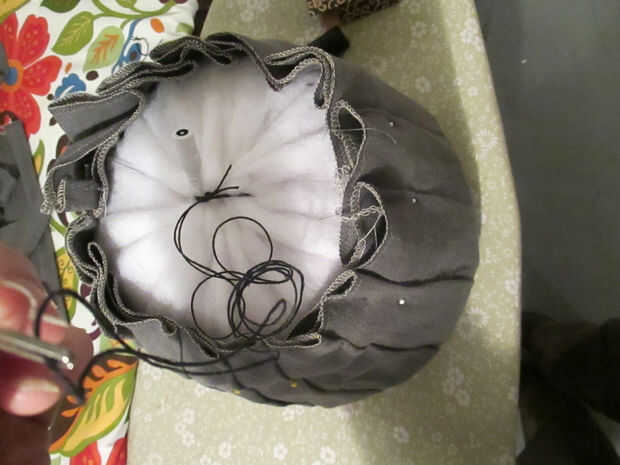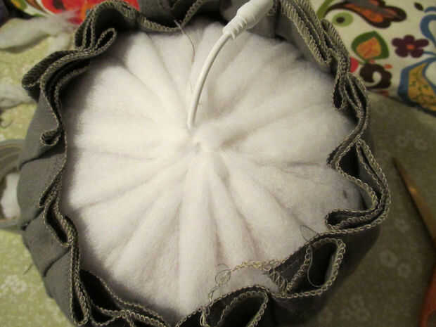 ~ Hace un hilo doble con nudo (un bucle grande), agarré bastante en el bateo con el hilo y alimentó la aguja a través del lazo para crear un ancla centrado.