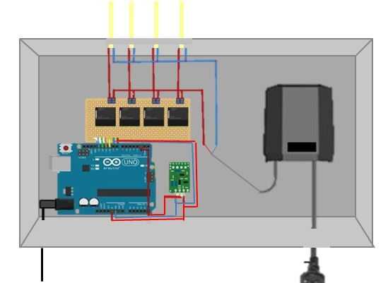 Fije el receptor Arduino, relés y del RF para el tablero de tarjeta.