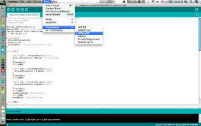 A continuación seleccione el tipo de programador como se muestra en la captura de pantalla (Herramientas > Programador > USBtinyISP)