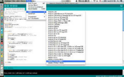 También seleccionar la Junta utiliza (Herramientas > Junta Directiva > Adafruit baratija 8MHz)