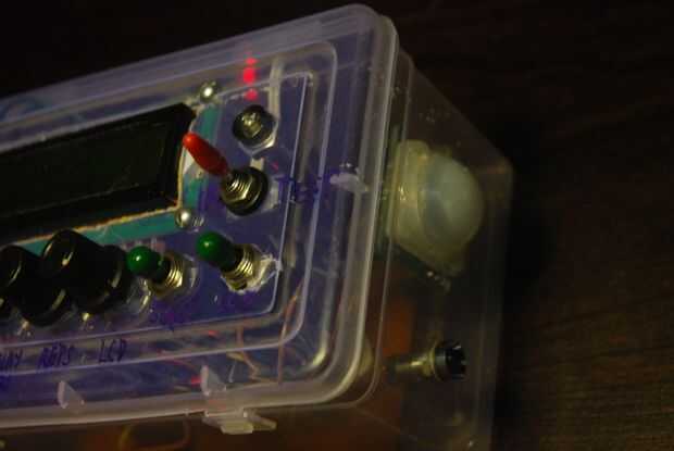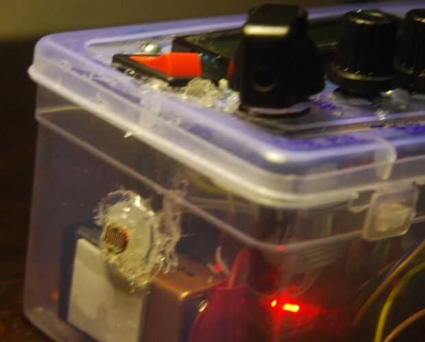 Una vez que el circuito está listo y todo funciona correctamente, puede utilizar a cualquier tipo de caja para colocar los componentes. Usé una caja de plástico con una tapa con bisagras. Es un poco grande en tamaño, pero tiene todos los componentes sin demasiada tensión en los cables.