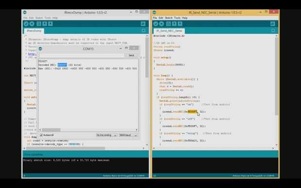 -Cuando pulse el botón y haz diferentes desde la línea de "NEC Decoded", cambie en mi código cada NEC al tipo recibido.
