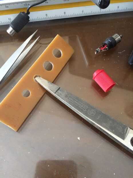 Usé un taladro para hacer agujeros y agrandado el radio hasta que los conectores podrían encajar.