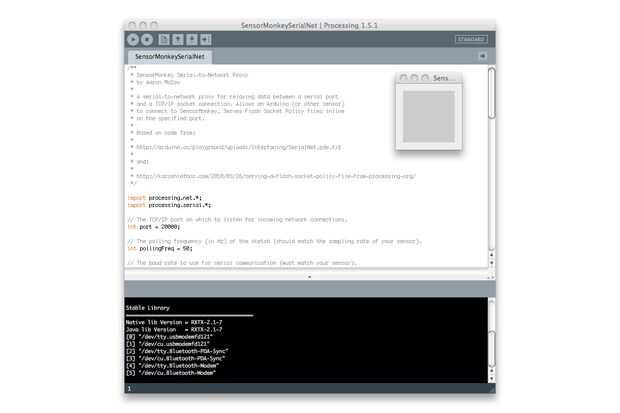 Tenga en cuenta que independientemente de si está utilizando la floración o SensorMonkeySerialNet, el puerto serie será diferente dependiendo de lo que se le asignó su Arduino. Por lo tanto, asegúrese de seleccionar el puerto serial correcto dispositivo particular.