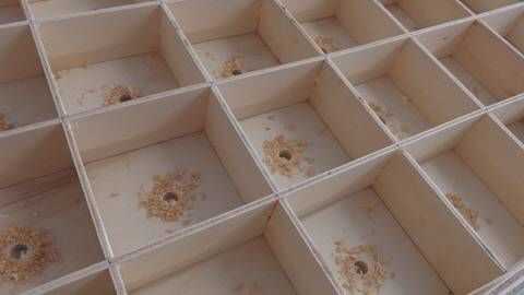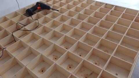Cuando las estructuras está listo puede hacer los agujeros. Sólo 200 agujeros para todo proyecto :-) Los agujeros están perfectamente en el centro. Mi consejo es usar una máscara para el centro del agujero.