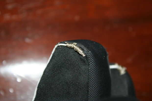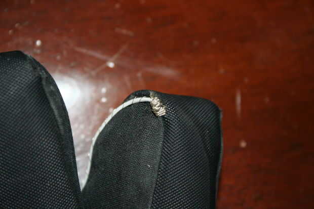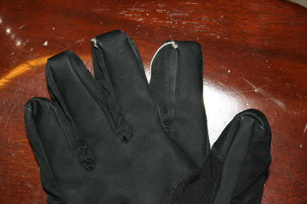 Luego, coser un bonito cordón de hilo en su guante. Recuerde que tiene que sobresalir lo suficiente como para que toque los contactos del otro guante con él, pero no lo quieres en la yema del dedo donde puede agarrar cosas metálicas (elevación de silla, bastón de esquí, etc.).
