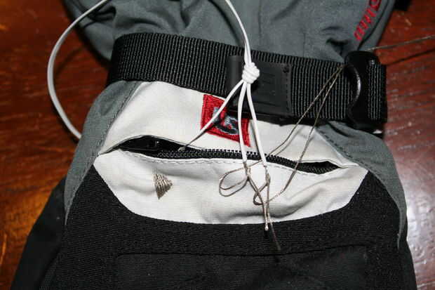 Asegúrese de cortar los extremos de la rosca después de pegar, y que las pastillas no pueden posiblemente toquen en el interior o exterior del guante!