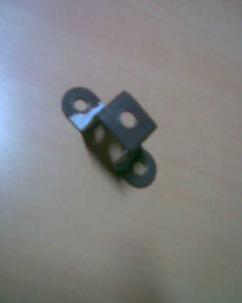 1) DOS ÁNGULO LATERAL (CANTIDAD = 1). 2) TORNILLOS Y TUERCAS. 3) HERRAMIENTAS. MOTOR DE CORRIENTE CONTINUA 4). 5) pequeña barra de acero (x1), (x1), la polea 3 agujeros de la placa de acero ángulo (x2). 6) 3 agujeros de acero ángulo de placa (x1). 7) hilo (1mtr). 8) BANDA DE GOMA (CANTIDAD = 1). 9) TAPÓN (CANTIDAD = 1)