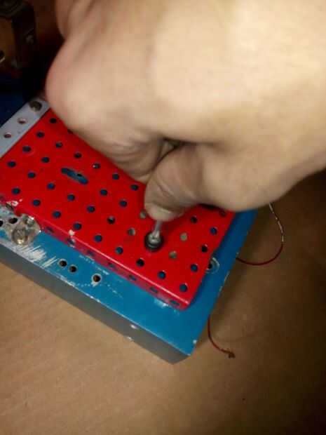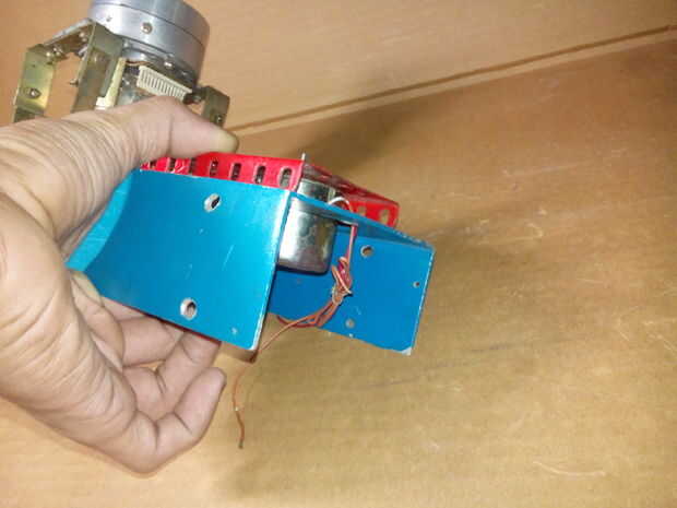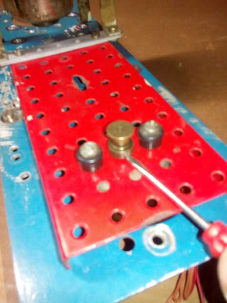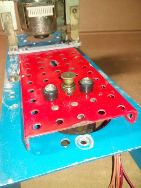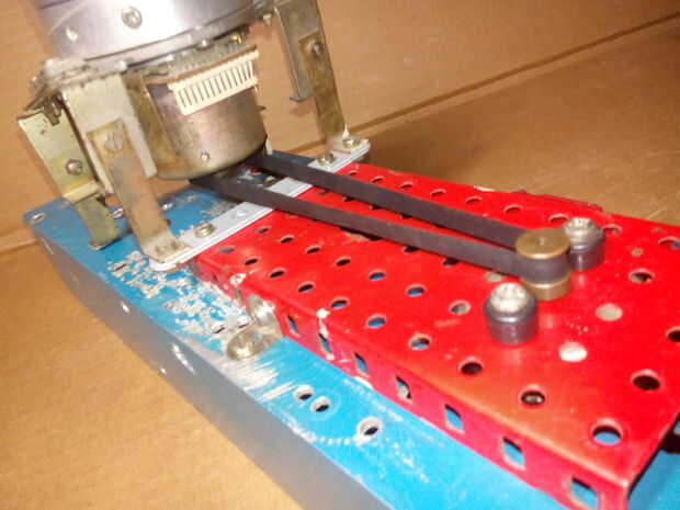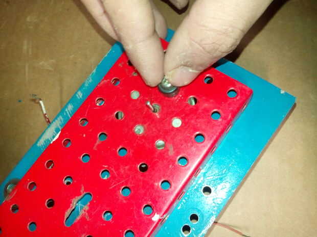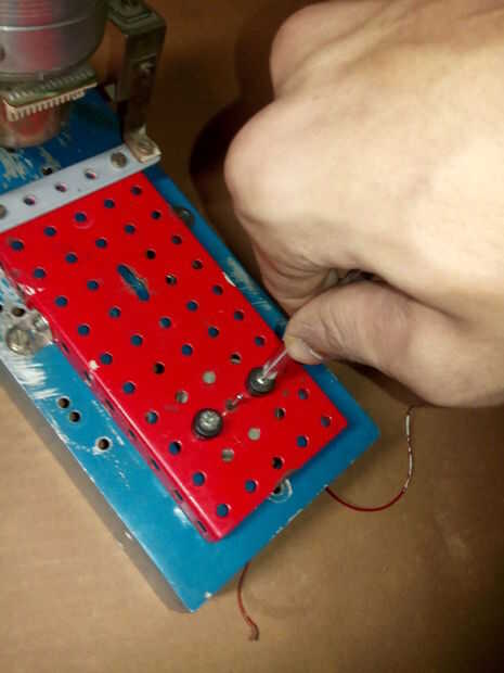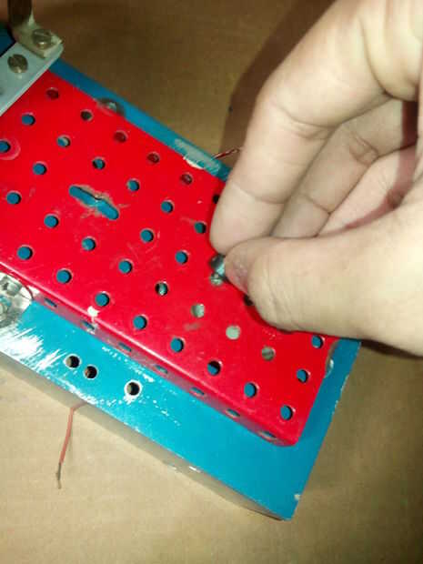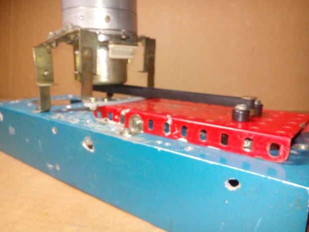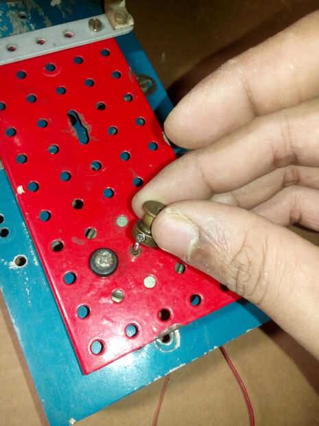 PARA HACER LA GRÚA GIRE, HAY QUE FIJAR UN DC MOTOR DEBAJO DE LA VIGA DE ACERO Y FIJAR CON TORNILLO COMO SE MUESTRA EN LA IMAGEN DE ARRIBA.