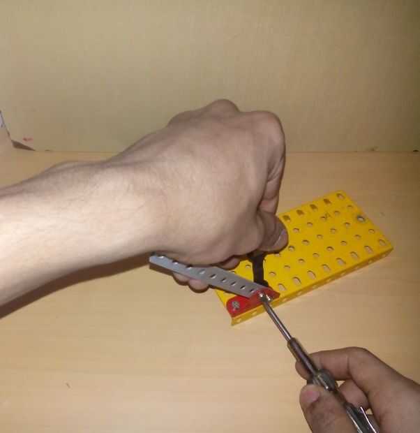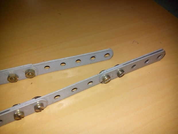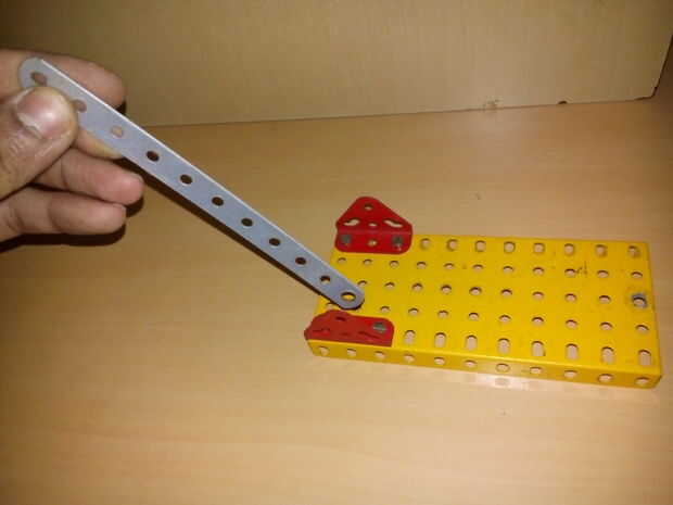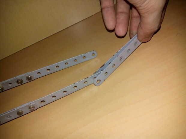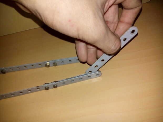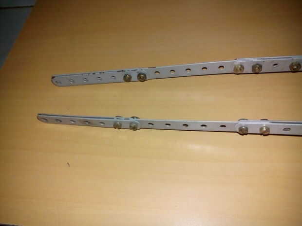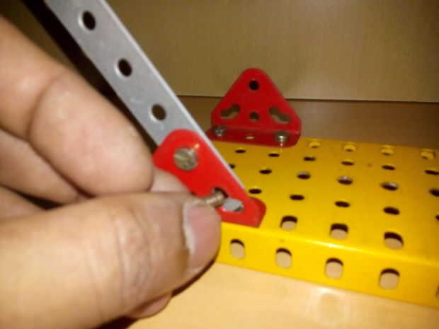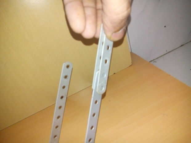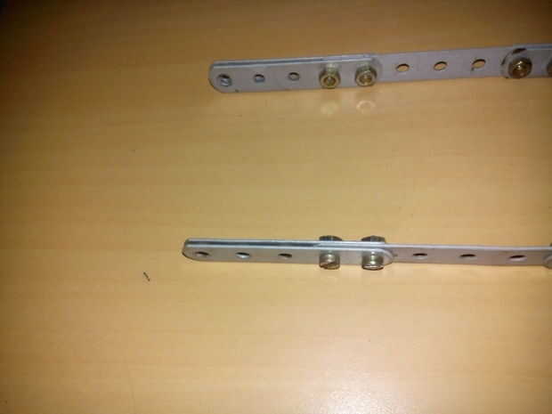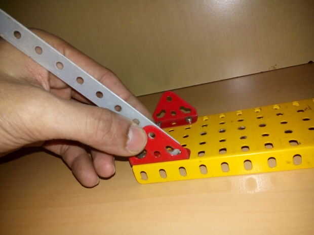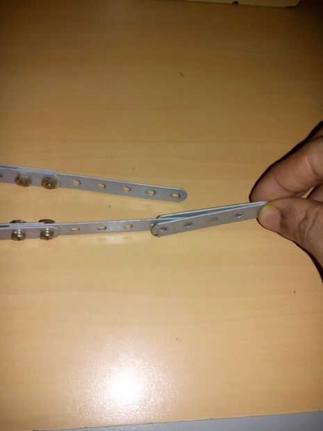 AHORA LOS AGUJEROS LUGAR LOS 11 PLACAS SOBRE EL ÁNGULO DE ACERO Y FIJAN CON DOS TORNILLOS Y LA TUERCA. ASIMISMO FIJAR LA OTRA PLACA DE ACERO DE 11 AGUJEROS EN EL OTRO ÁNGULO CON TORNILLO Y TUERCA COMO SE MUESTRA EN LA IMAGEN DE ARRIBA.