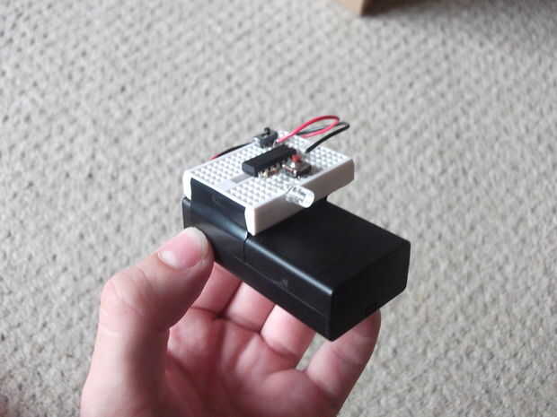 La interfaz es un poco goofy porque no tenía pequeños potenciómetros. Comienza en un segundo por disparo y aumenta por 1 segundo cada vez que pulse el botón y vuelve a cuando lo apagas. Así que para hacer 10 segundo temporizador, encienda y pulsa el botón 9 veces. (Probablemente sólo pondré una maceta de adorno ahí finalmente.)