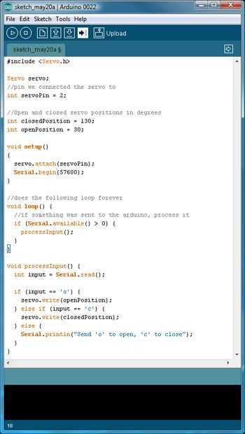 - Copiar el simple esbozo de Arduino más abajo y pegarlo en el área de texto