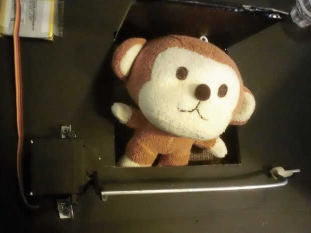 Aquí está el código. He puesto los grados que girará el brazo en ángulo que trabajan para mi mock up. Usted tendrá que hacer un trabajo que se ajuste a los ángulos específicos que necesita para trabajar su puerta.