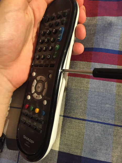 Algunos modelos, como el mío, no tiene ningún tornillo. En este caso, no enloquecer y sólo tiene que utilizar un flathead destornillador para abrir la caja, insertando en la pequeña separación entre las dos mitades de la el control remoto.