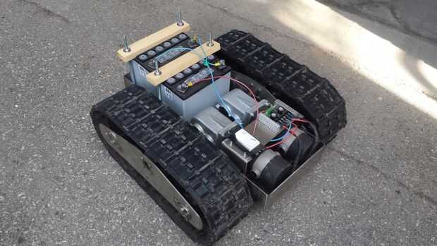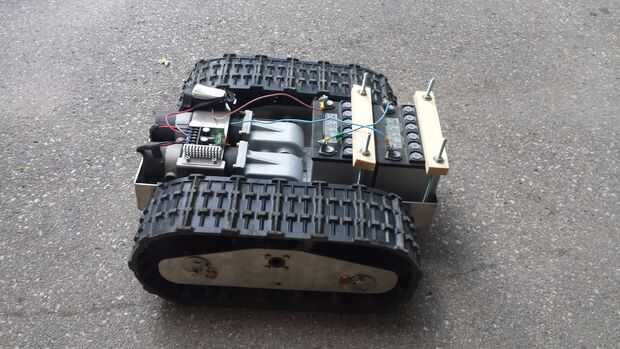 Mi primer intento de utiliza sólo una batería de una silla de ruedas que no tiene suficiente velocidad para mí así que añadido a un segundo que mejora grandemente el esfuerzo de torsión y velocidad.