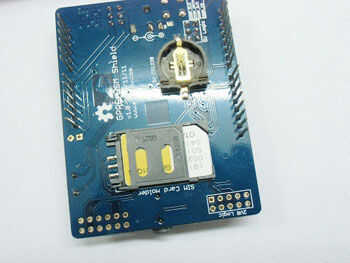 Del módulo GPRS el necesita una tarjeta SIM al trabajo, al igual que un teléfono. Inserte una tarjeta SIM a la toma SIM, asegúrese de que la SIM se desbloquea (es decir, funciona en su teléfono). Registrar el número de la tarjeta SIM, que se utilizará en la programación de Arduino.