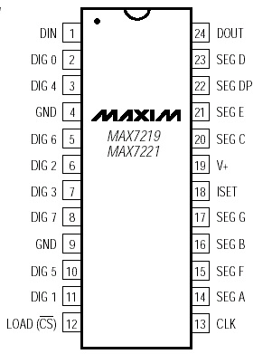 (MAX72xx serie MAX7219 y MAX7221) LCD conductor puede controlar hasta 8 pantallas LED o LEDs individuales 64 (ideal para matriz de LED 8 x 8) de siete segmentos. Sin embargo no se puede simplemente conectar 64 LED directamente como chip sólo tiene 24 pines y sólo 16 de ellos están destinados a conectarse a LED muestra. Por eso es importante conectar cada LED de los pernos en una matriz.