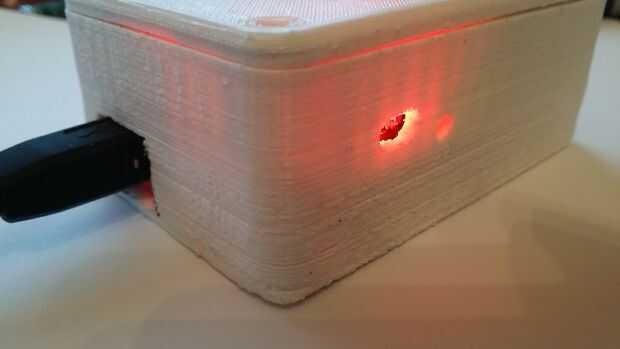 Tengo una impresora, por lo que imprimí una simple caja para él. Dejé un hueco para las luces de estado y para activar los SMS escudo o desactivar si es necesario.