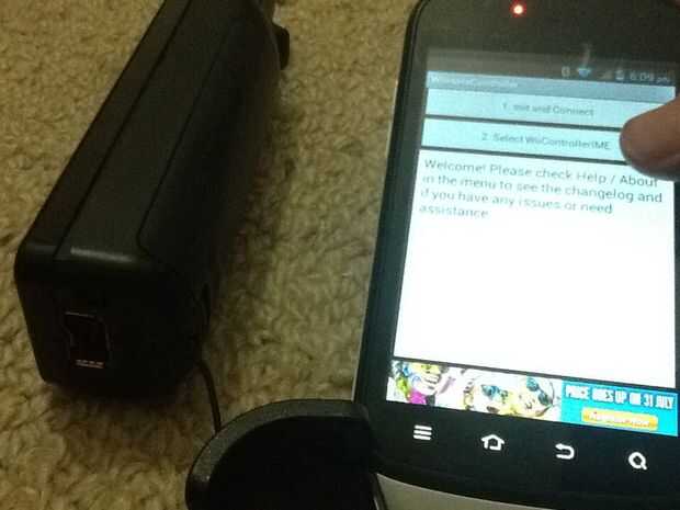 ahora que su telecontrol de wii se conecta toque en seleccionar wiicontrollerIME tres opciones aparecerán y grifo en wiicontrollerIME