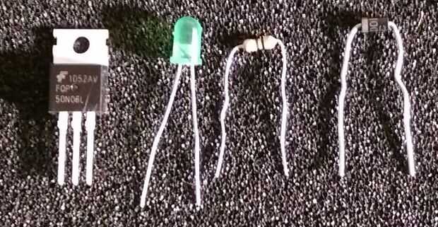 LED (cualquier color): Cualquier LED va a hacer, es sobre todo para la depuración de propósito. Lo estará cuando el MOSFET está en, pero debería ser obvio si funciona como debe fluir agua...