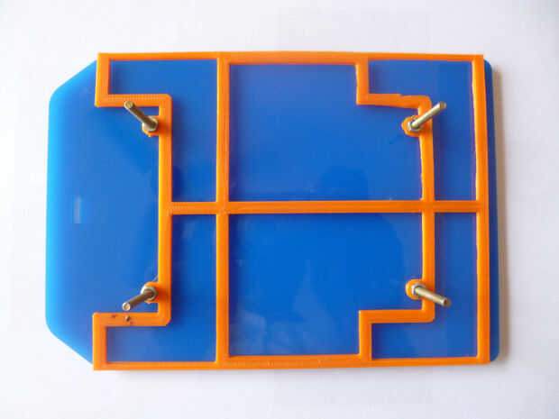 Apriete los más largos de la pieza inferior (con la línea naranja) y los más cortos en la parte superior
